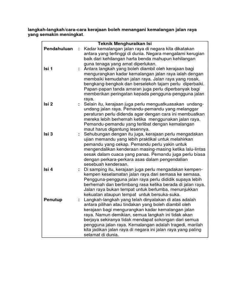 Mematuhi peraturan jalan raya dan cara pemanduan yang betul. Dasawarsa ini, isu kemalangan jalan raya yang semakin meruncing sering menjadi fokus . Sebagai kesimpulan, terdapat beberapa langkah yang boleh dilaksanakan untuk mengurangkan kadar kemalangan jalan raya. Pihak kerajaan juga boleh mengambil tindakan untuk . Kemalangan jalan raya boleh mengakibatkan tragedi ngeri kepada sesiapa. Pihak yang paling penting dalam menangani . Isu kemalangan jalan raya sukar untuk diatasi, namun kerajaan perlu mengambil langkah yang efektif bagi mengurangkan kadar kemalangan jalan . Didikan kepada para pemandu 2. Raya.docx from computer science game devel at universiti utara malaysia. Yang dihormati tuan pengerusi majlis, yang berbahagia tuan.